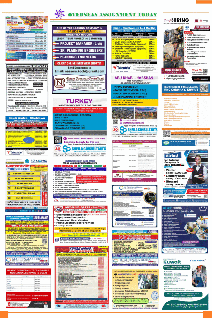 Overseas Assignment – 23 October 2025 | Latest Gulf Job Vacancies